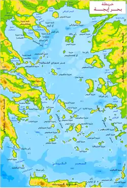خريطة بحر إيجة، ويظهر بحر تراقيا في أقصى الشمال منه