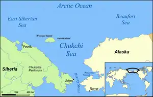 تم العثور على الدب القطبي على الجليد البحري في بحر تشوكشي؛ في الواقع، يمثل قطاع الدببة القطبية الذي تم العثور عليه في البحر وعلى جليده البحري واحدًا من خمسة قطاعات أوراسية أوراسيا متميزة وراثيًا من هذا النوع.[3]