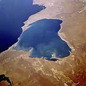 بحيرة شاطئة أو لاجون Garabogazköl في تركمانستان