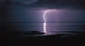 صورة برق قرب بحيرة غار الملح ليلاً