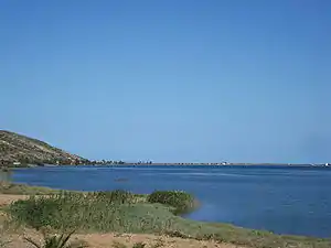 صورة جوية تظهر رأس الطرف وبحيرة غار الملح (على اليسار في الأسفل) وسبخة سيدي علي المكي (في الوسط)