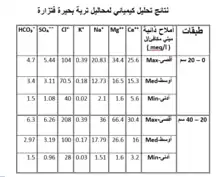 نتائج التحليل الكيميائي لمحلول التربة في بحيرة فتزارة