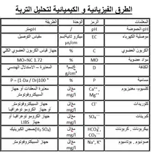 تم تجفيف عينات التربة بالهواء العذب للأرض ونخل إلى 2 ملم للحصول على جسيمات دقيقة التي سيتم استخدامها لجميع التحاليل الكيميائية والفيزيائية. إنجاز تحليل التربة تعلق بالكثافة والمسامية والكربون والمواد العضوية، ودرجة الحموضة، التوصيل الكهربائي والأملاح القابلة للذوبان. تحصلتا على هذه الخصائص بفعل