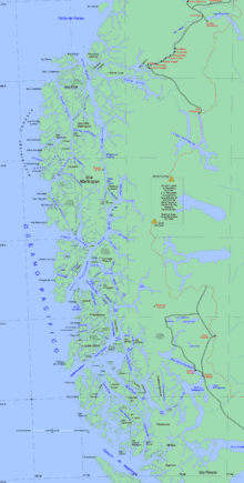 Earth Info, earth-info.nga.mil webpage: "Archived copy". Archived from the original on 2012-05-04. Retrieved 2010-06-27. "Ley N.º 13.375: Crea y fija los limites de los departamentos de Palena, Aysén, Coyhaique y Chile Chico y las de sus respectivas comunas-subdelegaciones". Ministerio del Interior de Chile. Murdie et al. 1999, Geo-Marine Letters 18:315-320. Lagabrielle, Yves; Suárez, Manuel; Rossello, Eduardo A.; Hérail, Gérard; Martinod, Joseph; Régnier, Marc; de la Cruz, Rita (2004). "Neogene to Quaternary tectonic evolution of the Patagonian Andes at the latitude of the Chile Triple Junction". Tectonophysics. 385: 211–241. doi:10.1016/j.tecto.2004.04.023. "The Marble Caves (Cavernas de Mármol)". Wondermondo.