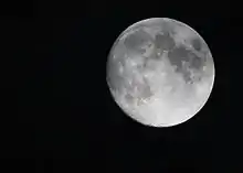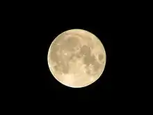 بدقة أكثر عندما تختلف خطوط طول المسار الشمسي والقمري بمقدار 180 درجة).[3] وهذا يعني أن نصف الكرة القمرية الذي يواجه الأرض (الجانب القريب) يكون تقريبا مضاءً بالكامل من الشمس، ويظهر مستدير (في حين أن الجانب البعيد يكاد يكون مظلم تماما).