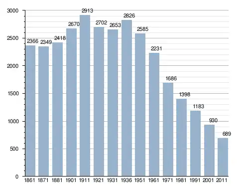 في سنة 1861 بلغ عدد السكان 2٬366 نسمة، وتطور العدد ليصل في سنة 2011 لـ 689 نسمة.