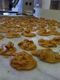 ![]() البرالين الأمريكية وهي تبرد على لوح من الرخام. وهي تصنع بالقشطة خلافا للبرالين الفرنسيّة | |