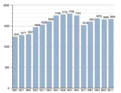 في سنة 1861 بلغ عدد السكان 1٬241 نسمة، وتطور العدد ليصل في سنة 2011 لـ 1٬664 نسمة.
