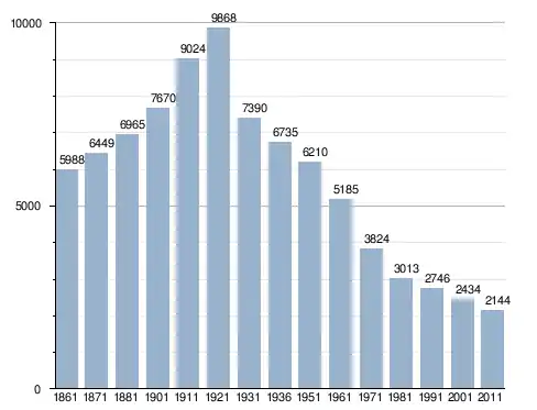 في سنة 1861 بلغ عدد السكان 5٬988 نسمة، وتطور العدد ليصل في سنة 2011 لـ 2٬144 نسمة.
