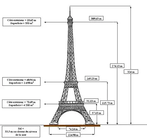 الجدول التالي يوضح المعطيات الأساسية لبرج ايفل.