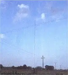 ولأن قوة الفولت كانت 120 كيلو فولت موجودة بين البرج وسطح الأرض، وقفت على 2 متر (6.6 قدم). كانت تعمل بمثابة مبرد للبرج (نصف موجة المبرد)، لذلك تم اختيار ارتفاعه لكي يعمل بمثابة هوائي نصف الطول الموجي في تردد البث.[2]