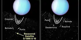 |CitationClass=تم تجاهله (مساعدة); تحقق من التاريخ في:|تاريخ=(مساعدة) - Foust, Jeff (December 31 2001). "Moon of Uranus is demoted". Spaceflight Now. مؤرشف من الأصل في 6 أكتوبر 2018. اطلع عليه بتاريخ 05 أغسطس 2006. الوسيط