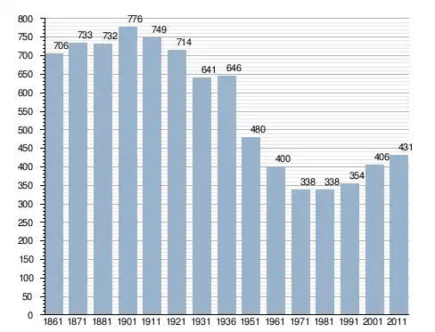 في سنة 1861 بلغ عدد السكان 706 نسمة، وتطور العدد ليصل في سنة 2011 لـ 431 نسمة.