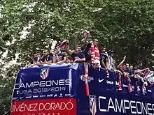 |CitationClass=تم تجاهله (مساعدة) - "Atlético Madrid celebrate La Liga title after draw at Barcelona". The Guardian. 17 May 2014. مؤرشف من الأصل في 1 أكتوبر 2019. اطلع عليه بتاريخ 28 يوليو 2016. الوسيط