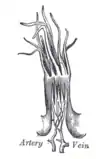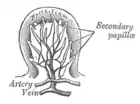 النتوء الذي في الوسط يمر نحو النهاية العميقة لبرعم التذوق، وينتهي هناك في جزء واحد أو متشعب مثل الدوالي المنتفخة والملتوية.