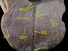 ![]() اللسان البشري. يمكن تحديد أنواع "الحليمات" من الأسماء الأجنبية. |
