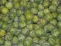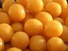 عادة ما تكون ثمار الفاكهة متوسطة الحجم ويتراوح قطرها بين 1 و 3 بوصات ويكون شكلها كرويًا إلى بيضاوي. ويكون اللب متماسكًا رطبًا كثير العصارة وسهل المضغ. وقشرة ثمرة الفاكهة ملساء وذات سطح شمعي طبيعي ملتصق بلب الثمرة. ولثمرة الفاكهة بذرة واحدة كبيرة.