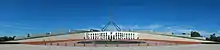 الفائز في المسابقة كان شركة ميتشل / جيورجولا المعمارية التي مقرها فيلادلفيا، مع العمل في الموقع من قبل المهندس المعماري الإيطالي رومالدو جيورجولا، مع التصميم الذي تضمن دفن معظم المبنى تحت كابيتال هيل، ووضع سقف الصرح ذو البرج الهائل الذي يعلوه علم أسترالي كبير. تضمنت الواجهات تقليدًا متعمدًا لبعض أنماط مبنى البرلمان القديم، بحيث يكون هناك تشابه طفيف على الرغم من الاختلاف الهائل في الحجم.[12]
