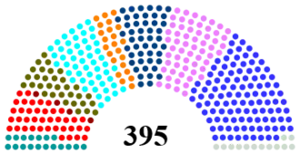 - مجلس النواب: ويضم 392 عضوا ينتخبون مباشرة لولاية مدتها خمس سنوات.