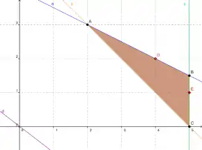 وهذا يعني أن الخوارزميات الموضوعة لحل البرامج الرياضية الخطية في حالة تعظيم، هي نفسها تصلح لحل البرامج الرياضية الخطية في حالة تقليل، وذلك بالاستفادة من العلاقة السابقة. الثنائية في البرمجة الخطية A series of linear constraints on two variables produces a region of possible values for those variables. Solvable problems will have a feasible region in the shape of a simple polygon.
