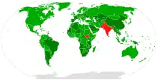 أحمر: دول لم توقع (الهند، إسرائيل، باكستان، جنوب السودان).