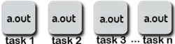 في SPMD، تقوم عدة معالجات مستقلة في نفس الوقت بتشغيل نفس البرنامج في نقاط مستقلة، بدلاً من التنفيذ المتزامن الذي تفرضه SIMD (تعليمات وحيدة، بيانات متعددة) على بيانات مختلفة. مع SPM، يمكن تشغيل المهام على وحدات المعالجة المركزية للأغراض العامة ؛ يتطلب SIMD معالجات شعاعية لمعالجة تدفقات البيانات. ويلاحظ أن كلاهما لا يستبعد أحدهما الآخر.