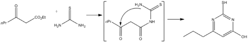 |CitationClass=تم تجاهله (مساعدة) - Anderson, George W.; Halverstadt, I. F.; Miller, Wilbur H.; Roblin, Richard O. (1945). "Studies in Chemotherapy. X. Antithyroid Compounds. Synthesis of 5- and 6- Substituted 2-Thiouracils from β-Oxoesters and Thiourea". Journal of the American Chemical Society. 67 (12): 2197–2200. doi:10.1021/ja01228a042. الوسيط