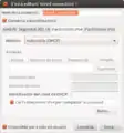 نافذة إعدادات الشبكة السلكية في توزيعة لينوكس أوبونتو 11.10، وقد تمّ اختيار محددات الإصدار الرابع من بروتوكول الإنترنت وضبط نمط التهيئة إلى الشكل الآلي باستعمال بروتوكول التهيئة الآلية للمضيفين.