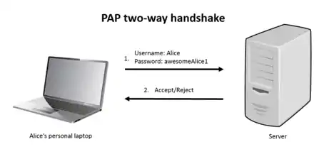 يعد بروتوكول مصادقة كلمة المرور أحد أقدم بروتوكولات المصادقة. تتم تهيئة المصادقة عن طريق إرسال العميل حزمة مع بيانات الاعتماد (اسم المستخدم وكلمة المرور) في بداية الاتصال، مع تكرار العميل طلب المصادقة حتى يتم تلقي الإقرار. [6] يعد هذا الأمر غير آمن للغاية نظراً لإرسال بيانات الاعتماد "بشكل واضح " وبشكل متكرر، مما يجعله عرضة حتى لأكثر الهجمات البسيطة مثل التنصت والهجمات التي تتم من خلال الوسط . على الرغم من دعمها على نطاق واسع، فإنه يتم تحديد أنه إذا كان التنفيذ يوفر طريقة مصادقة أقوى، فيجب تقديم هذه الطريقة قبل PAP. المصادقة المختلطة (مثل نفس العميل الذي يستخدم كل من PAP و CHAP) غير متوقع أيضاً، لأن مصادقة CHAP ستتعرض للخطر بسبب إرسال PAP لكلمة المرور بنص عادي وواضح غير مشفر.