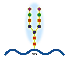 - ( N- linked): حَيث يَرتبط السُكر مَع مجموعة (NH2) الموجودة في الحمض الأميني أسباراجين (Asparagines) .