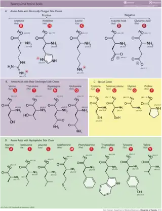 − − الأحماض الأمينية التي يتعاطاها الناس من غذائهم عددها 20 منهم 10 أحماض ألمينية ضرورية ، و10 أحماض أمينية غير ضرورية ، بمعنى أن جسم الإنسان يستطيع تصنيعها بنفسه؛ أي لا يحدث للإنسان فيها عجزا. والمسألة مهمة من ناحية أناس أوروبيون وفي أمريكا لا تأكل اللحوم بأنواعها ، وتعتمد على النباتات في أخذ احتياجاتها من البروتين . ولكن بروتينات النباتات لا تحتوي على جميع الأحماض الأمينية الضرورية ، فهؤلاء قد يعرضوا أنفسهم إلى عجز في بعض البروتينات التي لا يستطيع الجسم تكوينها. وتوجد مجموعات أخرى لا تأكل اللحوم ولكنها تأكل البيض والحليب والجبن ، فهؤلاء لا خوف عليهم ففي تلك البروتينات توجد الأحماض الأمينية الضرورية.