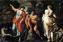 لوحة معنونة بإسم إختيار هرقل من قبل الرسام أنيبيل كاراتشي تظهر بروديكوس