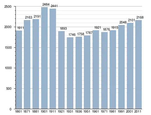 في سنة 1861 بلغ عدد السكان 1٬911 نسمة، وتطور العدد ليصل في سنة 2011 لـ 2٬168 نسمة.