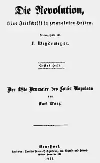 ![]() غلاف مجلة Die Revolution حيث نشرت المقالة أول مرة عام 1852 | |