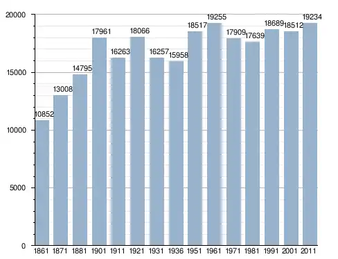 في سنة 1861 بلغ عدد السكان 10٬852 نسمة، وتطور العدد ليصل في سنة 2011 لـ 19٬234 نسمة.