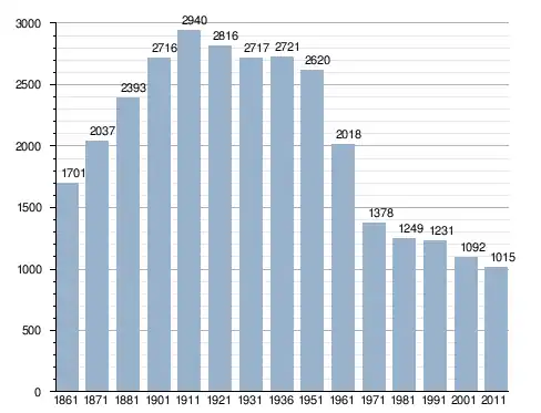 في سنة 1861 بلغ عدد السكان 1٬701 نسمة، وتطور العدد ليصل في سنة 2011 لـ 1٬015 نسمة.