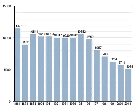 في سنة 1861 بلغ عدد السكان 11٬478 نسمة، وتطور العدد ليصل في سنة 2011 لـ 5٬055 نسمة.