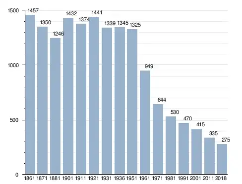 في سنة 1861 بلغ عدد السكان 1٬457 نسمة، وتطور العدد ليصل في سنة 2018 لـ 275 نسمة.