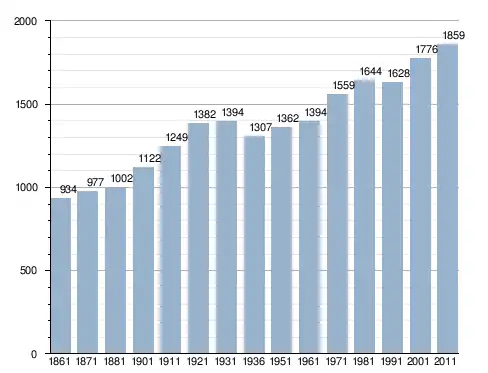 في سنة 1861 بلغ عدد السكان 934 نسمة، وتطور العدد ليصل في سنة 2011 لـ 1٬859 نسمة.
