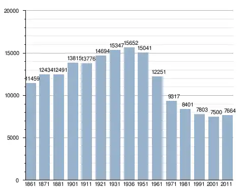 في سنة 1861 بلغ عدد السكان 11٬459 نسمة، وتطور العدد ليصل في سنة 2011 لـ 7٬664 نسمة.