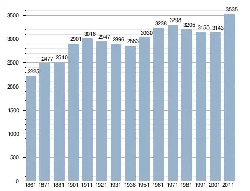 في سنة 1861 بلغ عدد السكان 2٬225 نسمة، وتطور العدد ليصل في سنة 2011 لـ 3٬535 نسمة.