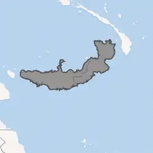 وهناك منحدرات حادة من بعض الأقسام في خط الساحل، وفي بعض الأقسام الأخرى، تكون الجبال نحو الداخل بشكل أكبر، وتكون المنطقة الساحلية مسطحة وتحيط بها الشعاب المرجانية. وأعلى نقطة فيها، والتي يصل ارتفاعها إلى 2,438 م (7,999 قدم)، هي جبل سينويت في سلسلة جبال بينينج في الشرق. ومعظم التضاريس تغطيها الغابات الاستوائية المطيرة وتتم تغذية العديد من الأنهار من خلال الأمطار الكثيفة.