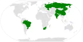 بريكس[1] هو مختصر للحروف الأولى باللغة اللاتتينية BRICS (يتم كتابة المختصر بالعربية "برهجص" لأول الحروف باللغة العربية [2]) /المكونة لأسماء الدول صاحبة أسرع نمو اقتصادي بالعالم، وهي: البرازيل وروسيا والهند والصين وجنوب أفريقيا. عقدت أول قمة بين رؤساء الدول الأربع المؤسسة في ييكاتيرينبرغ ،روسيا في حزيران 2009 حيث تضمنت الإعلان عن تأسيس نظام عالمي ثنائي القطبية.[3] وعقدت أول لقاء على المستوى الأعلى لزعماء دول "بركس" في يوليو/تموز عام 2008، وذلك في جزيرة هوكايدو اليابانية حيث اجتمعت آنذاك قمة "الثماني الكبرى". وشارك في قمة "بركس" رئيس روسيا فلاديمير بوتين ورئيس جمهورية الصين الشعبية هو جين تاو ورئيس وزراء الهند مانموهان سينغ ورئيس البرازيل لويس ايناسيو لولا دا سيلفا. واتفق رؤساء الدول على مواصلة التنسيق في أكثر القضايا الاقتصادية العالمية آنية، بما فيها التعاون في المجال المالي وحل المسألة الغذائية.[4] انضمت دولة جنوب أفريقيا إلى المجموعة عام 2010، فأصبحت تسمى بريكس بدلا من بريك سابقا.