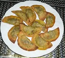 | المكونات الرئيسية | عجينة مثلثة الشكل،البيض، بصل مقطع،تونة ، هريسة، كبر، وبقدونس |