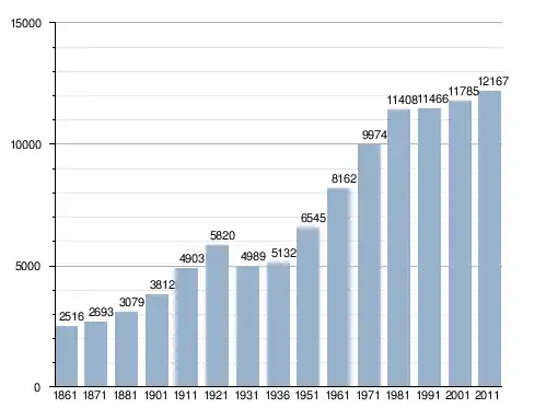 في سنة 1861 بلغ عدد السكان 2٬516 نسمة، وتطور العدد ليصل في سنة 2011 لـ 12٬167 نسمة.