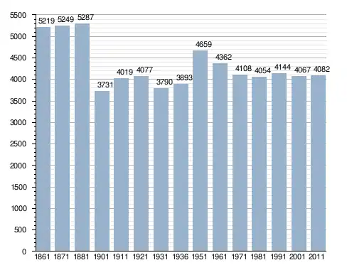في سنة 1861 بلغ عدد السكان 5٬219 نسمة، وتطور العدد ليصل في سنة 2011 لـ 4٬082 نسمة.