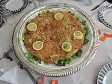 ![]() بسطيلة مغربية حلوة، مُغطاة بمسحوق السكر | |