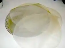 يُطلق اسم ورق البسطيلة أيضا على أوراق رقيقة من العجين تسمى في المغرب "الورقة"[16] وهي تشبه "الديول" في الجزائر و"البرواك" في تونس،[16] وهي ضرورية لصناعة أكلة البسطيلة.[17]