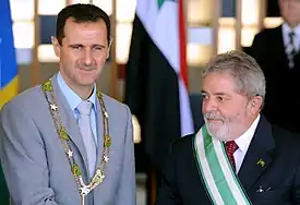 |CitationClass=تم تجاهله (مساعدة); تحقق من التاريخ في:|تاريخ أرشيف=(مساعدة) - "Gobierno Nacional condecoró al Presidente sirio con Orden del Libertador" (باللغة الإسبانية). El Correo del Orinoco. 29 June 2010. مؤرشف من الأصل في 08 نوفمبر 2016. اطلع عليه بتاريخ 14 مارس 2015. الوسيط