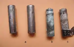 كانت بطاريات الزنك-كربون معرضة لتسرب محلول الكهرل منها ، فكان ذلك يفسد الجهاز الكهربائي الذي يستخدمها . لهذا إذا استخدمت تلك البطاريات فمن المستحسن اخراج البطارية من الجهاز في أوقات عدم استخدامه .